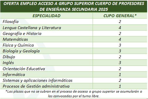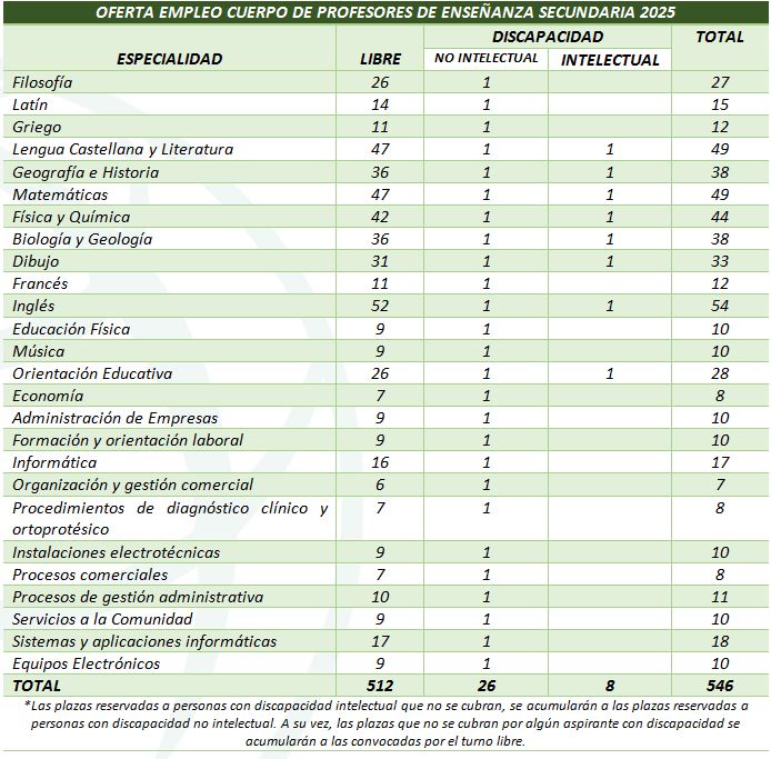 - 575 plazas se reservan parael Cuerpo de profesores de Enseñanza Secundaria, a las que se sumarán las plazas que deriven de la Oferta de Empleo Público de 2026, y que se convocarán en 2027.