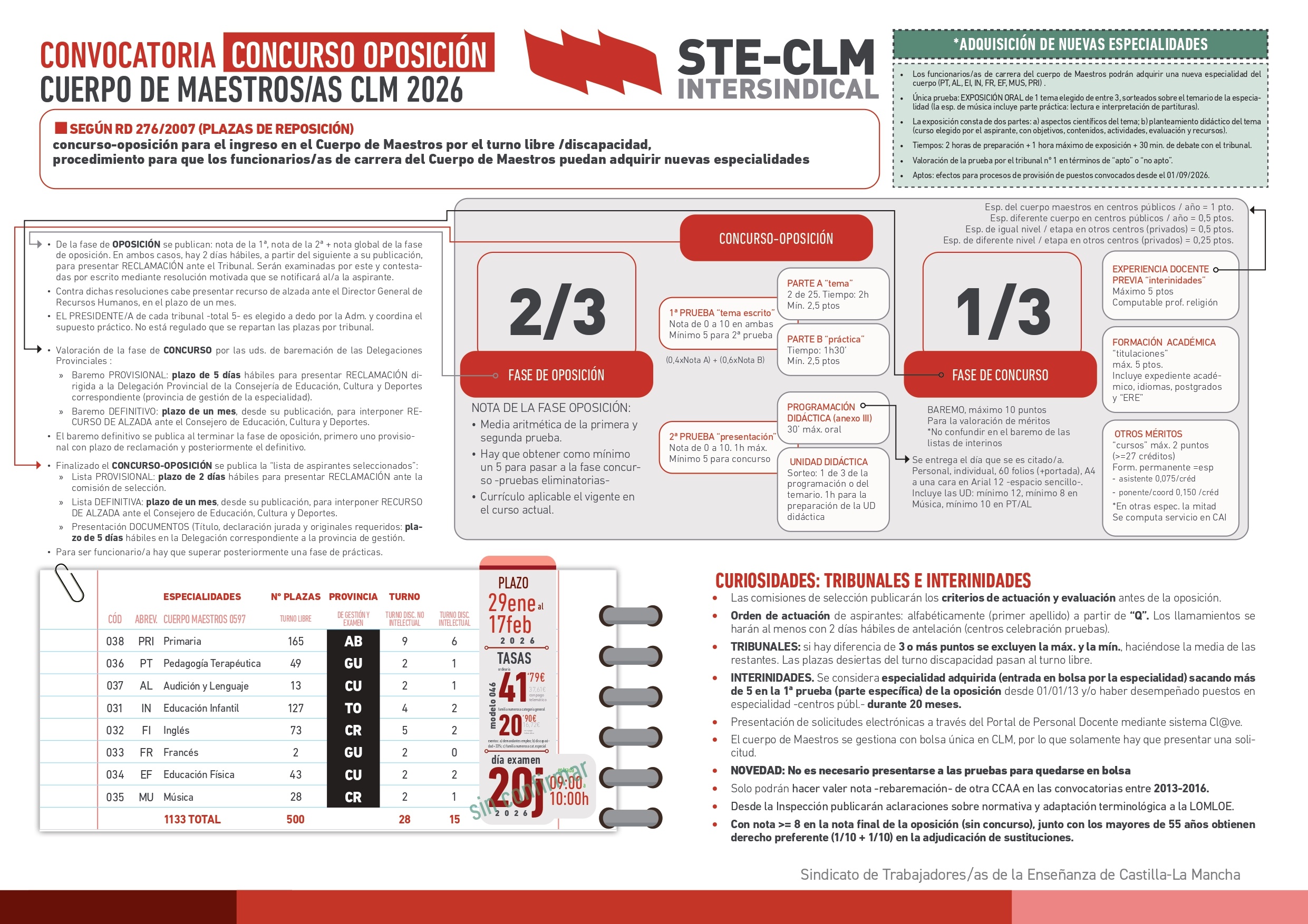 Borrador convocatoria Oposiciones Cuerpo de Maestros/as y adquisición de nuevas especialidades.