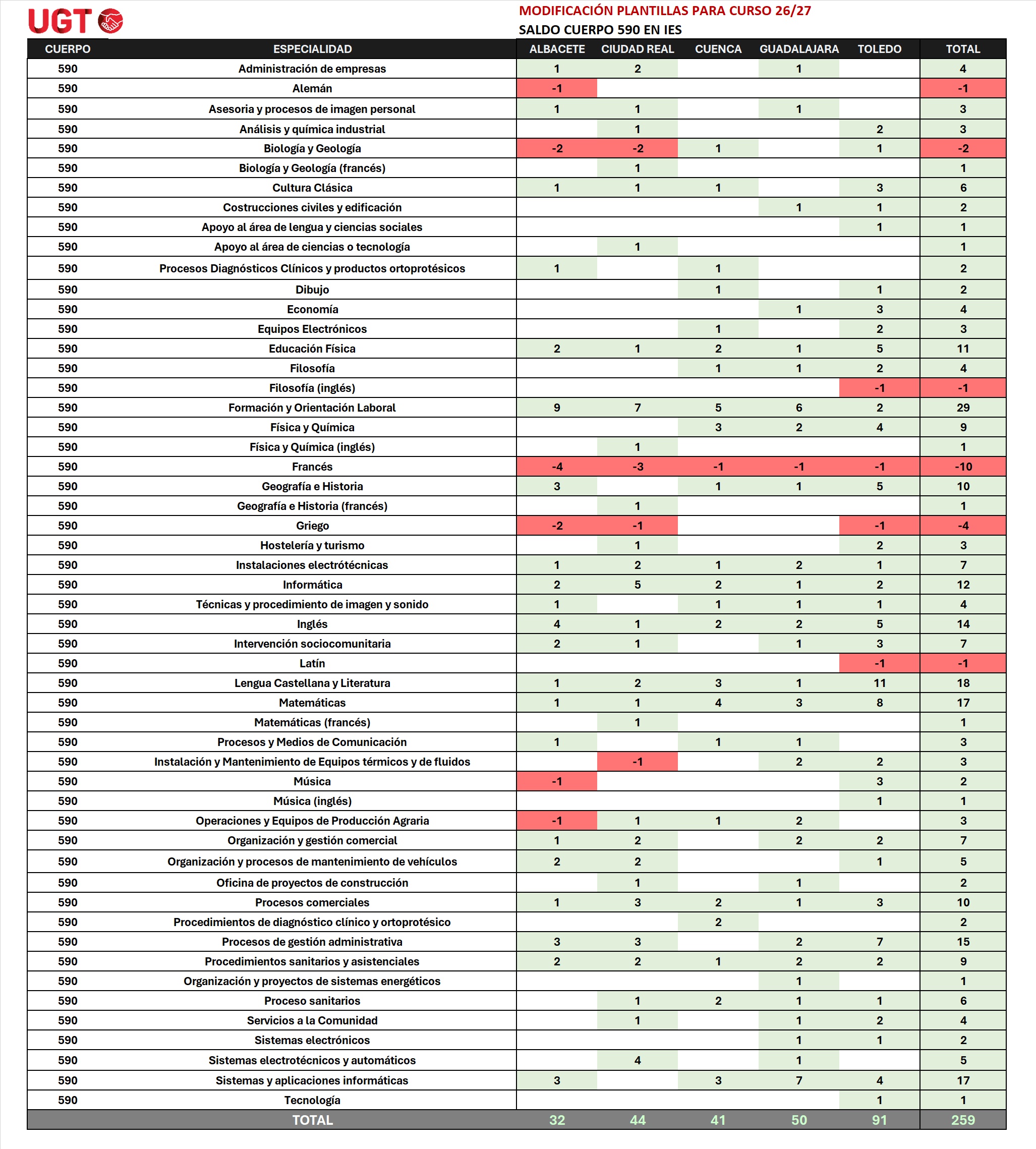https://educacion.fespugtclm.es/plantilla-ies-26-27/https://educacion.fespugtclm.es/storage/Captura-de-pantalla-2026-01-19-220336.pnghttps://educacion.fespugtclm.es/storage/Captura-de-pantalla-2026-01-19-220336-150x150.png2026-01-20T07:54:31+01:00UGT EnseñanzaSlideÚLTIMAS NOTICIAS: E. PÚBLICALa propuesta provisional de modificación de plantillas para el año que viene arroja un incremento de 266 plazas en IES, desglosado de la siguiente manera: