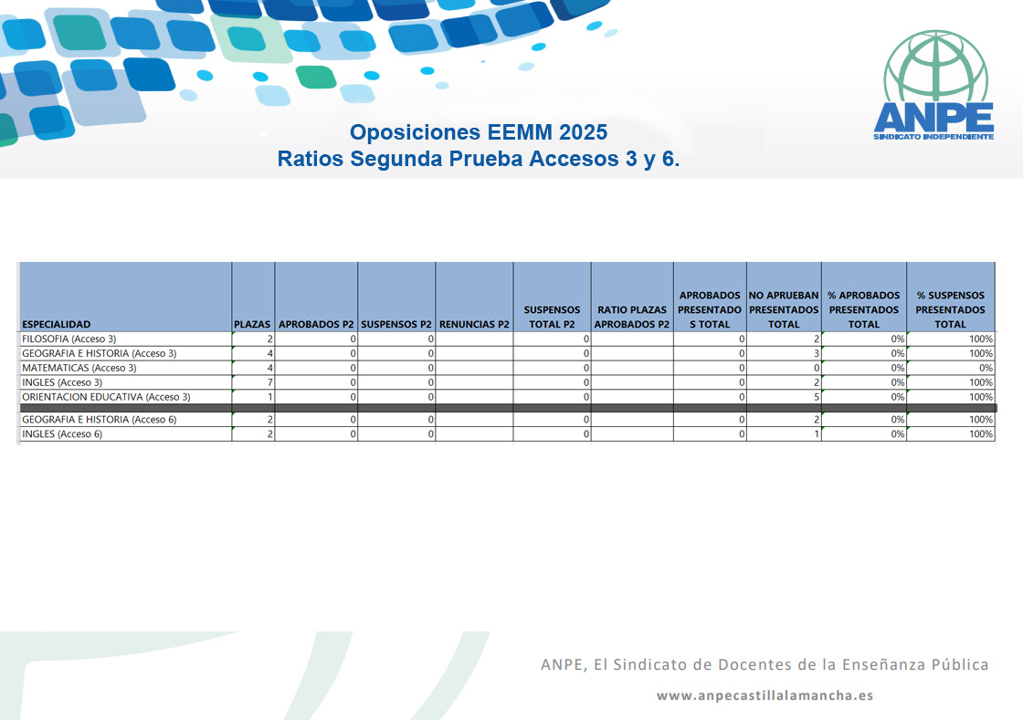 OPOSICIONES EEMM 2025. Ratios y estadísticas segunda prueba