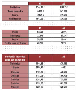 Cada año, en la Ley de Presupuestos Generales del Estado se incluye un punto en el que se establece expresamente unos importes menores para las retribuciones básicas de las pagas extraordinarias. Esto se traduce en que cobramos menos en los conceptos de salario base y los trienios, lo que supone pagas extras hasta un 20% inferiores de lo que percibiríamos sin el recorte.